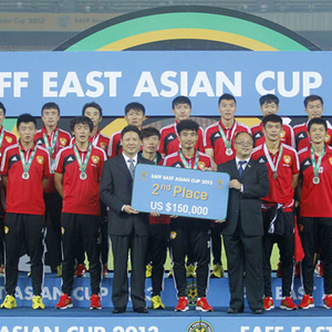 2013年,东亚足球锦标赛更名为东亚杯,由傅博率领的中国队首战3-3战平日本,次战和韩国0-0握手言和,末战4-3战胜澳大利亚,最终以1胜2平的战绩排名2胜1平的日本队之后,屈居亚军。其中末战与澳大利亚的比赛堪称中国队近年来打出的经典一战,球队整体流畅的进攻配合将澳洲虎彻底打蒙,于大宝、孙可、杨旭、武磊在这场比赛中各下一城。