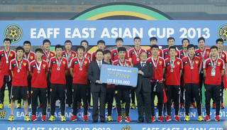 2005年,由朱广沪率领的中国队首战1-1战平韩国,次战2-2与日本握手言和,不过末轮2-0战胜朝鲜,从而以1胜2平积5分的成绩,力压同为1胜1平1负的日本和朝鲜,首次捧起了冠军奖杯。