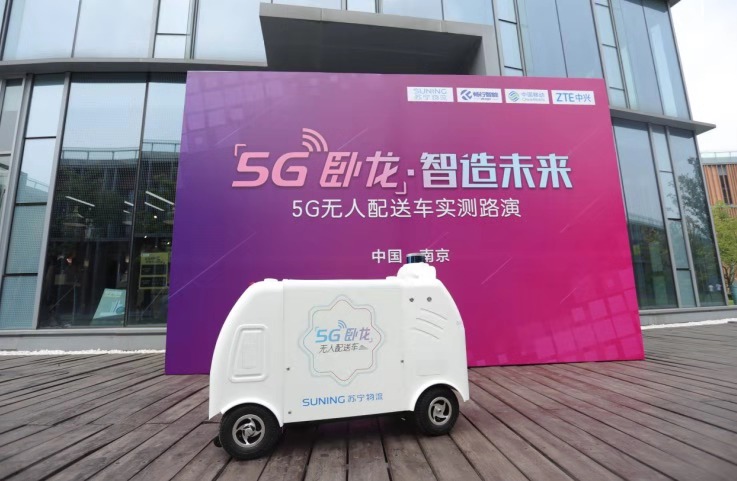 这款“5G卧龙”是苏宁物流“卧龙一号”的升级版。去年4月,苏宁物流推出的“卧龙一号”无人配送车在南京实测成功,随后在北京、南京、成都三地实现常态化运营。