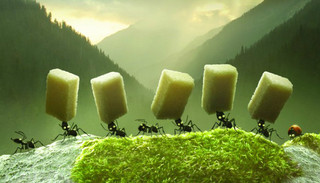 一直以来,蚂蚁搬东西给人一种非常混乱的印象。蚂蚁经常到处乱窜,一会儿离开队伍,一会儿又重新回来,一窝蜂地围着食物。但是,在混乱之下实则隐藏着明确的分工以及精妙的运作系统:蚂蚁军团的大部队负责扛起重物向前移动,而那些看似散漫到处乱窜的蚂蚁其实担任着侦察兵的角色,负责指引方向。更奇妙的是,蚂蚁们会在途中自觉地变换搬运工与侦察兵的角色,轮流换岗。