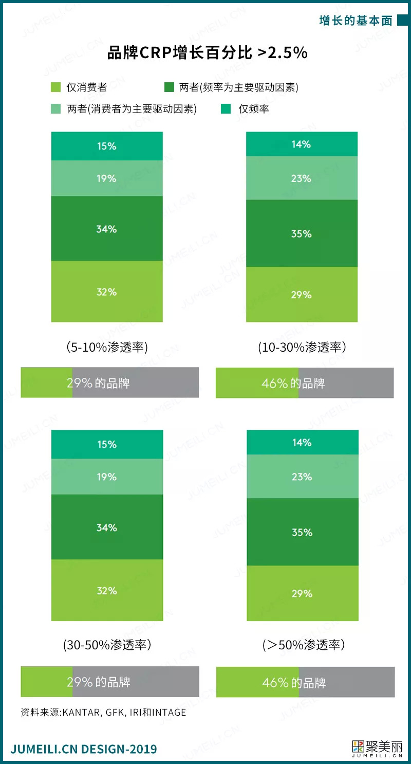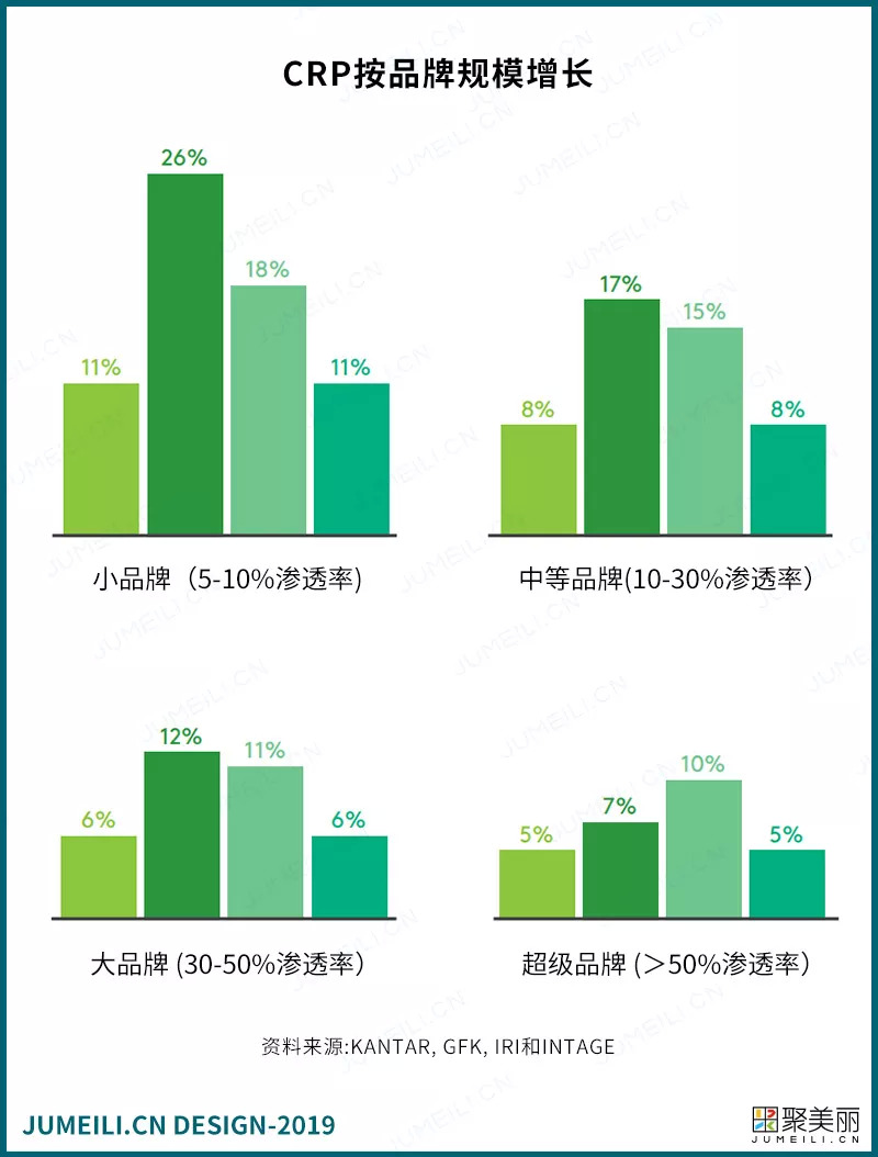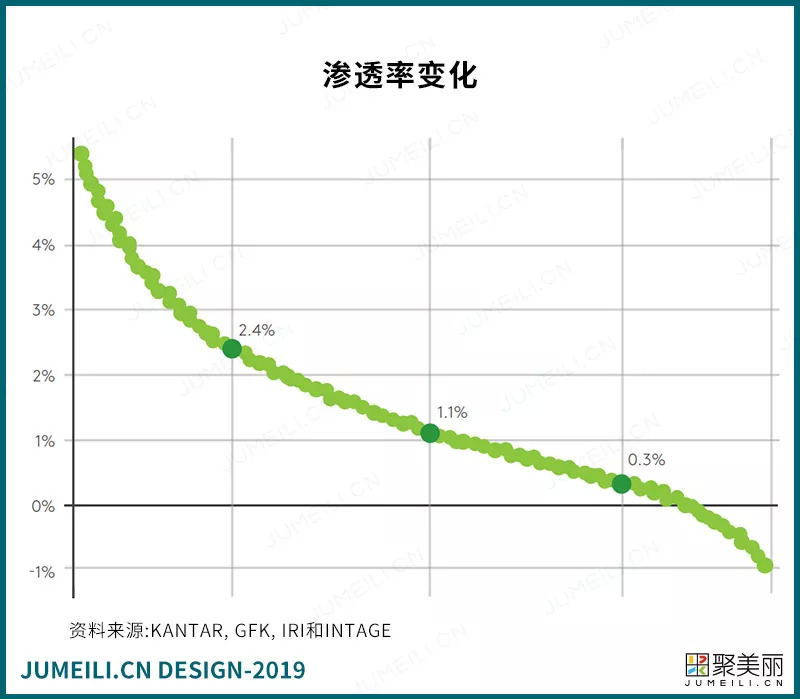我们看到的2018年CRP增长的5380个品牌中,平均渗透率增长1.1%。不同的地区、类别和品牌规模会有不同,但一般来说,在一年的时间里,以1%的市场渗透率为目标将会为你的品牌带来强劲的增长。