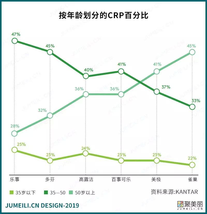 我们可以用很多方式分析消费者的行为,其中最重要的区别之一就是年龄。它比大多数标准的人口统计数据更好地识别了品牌差异,并展示了增长的领域——比如经常被遗忘的50岁以上人群的重要性。