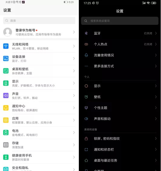 左边 EMUI ,右边MIUI 。