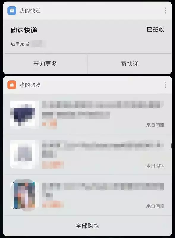 但把支付宝的购买信息和快递信息自动匹配到负一屏里的,本地化系统中只有MIUI 做了,这功能对于焦急等待快递的剁手党太靠谱了,不用再去打开浏览器一个个去输入单号查询。