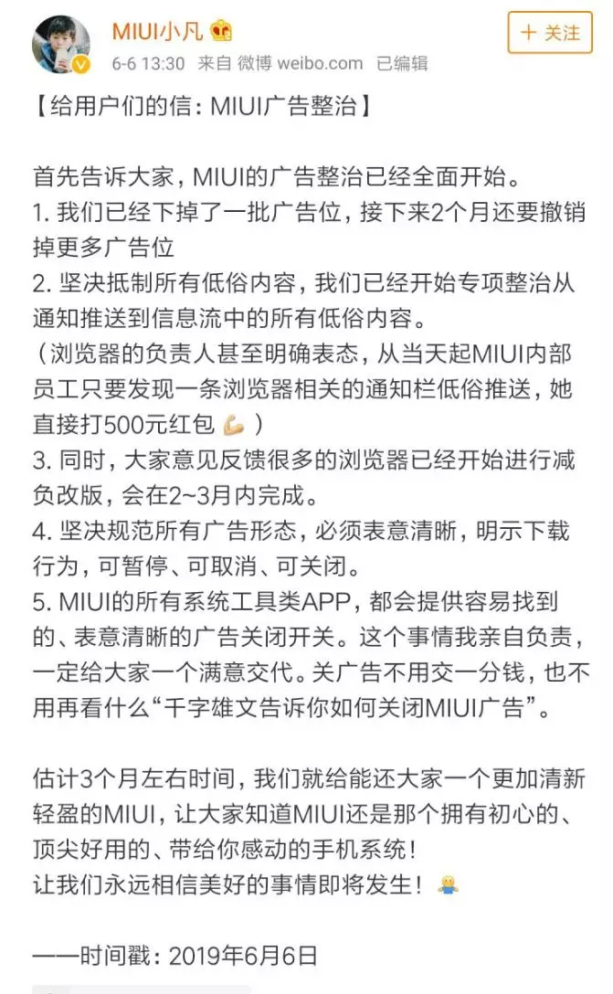 庆幸的是,小米也意识到了这一点,已经在积极主动的清除低俗推送和广告位,承诺三个月之内摆脱掉这个臃肿的问题。