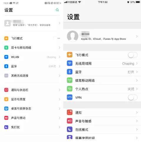 左边ColorOS,右边 iOS 。