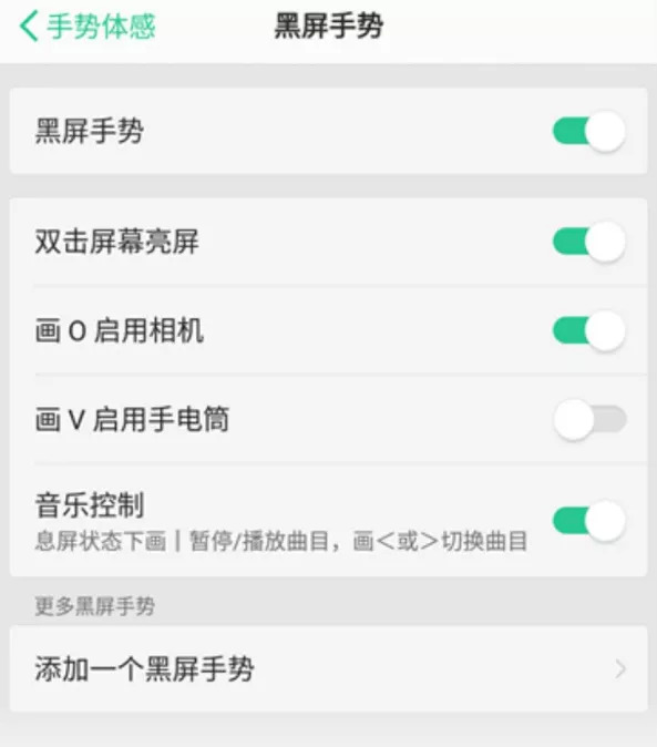 熄屏下的黑屏手势设置是 Color OS 的一大特色,直接在未解锁的手机上画一个圈能开启相机,画一个 “ V ”能打开手电,实测好用。