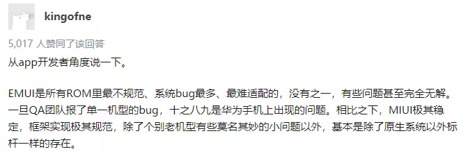 可这独特的编译方式的改变也让底层的 App 开发者们怨声载道,EMUI几乎是自己制定了一套独立于安卓之外的规范,不仅 Bug 多,极差的适配性加上无法解锁 BL 和 Root。据说尝试 Debug 过的,都隐约觉得头顶微凉。