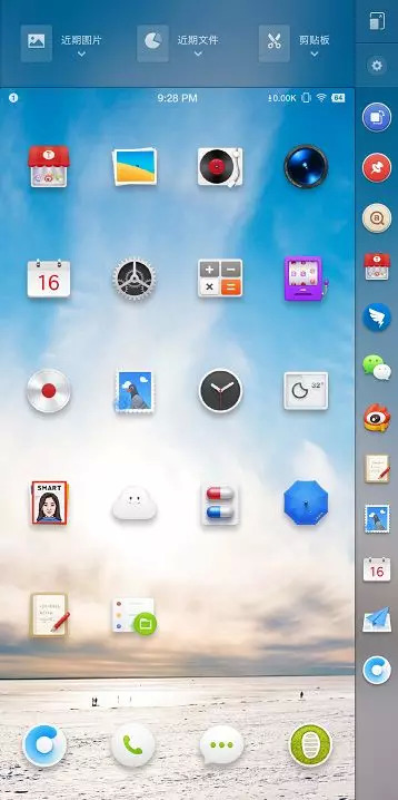 图标也无法通过更换桌面启动器的方式来更改,如此一来,壁纸的选择就不能太花,不然在观感上会显得很乱。