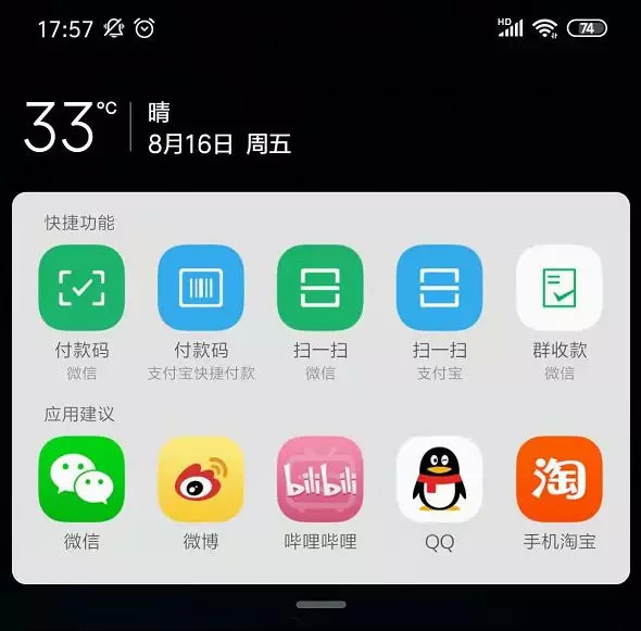 本地化做的没有华为和小米那么完整,负一屏不支持微信或支付宝的快捷扫码,有些遗憾。