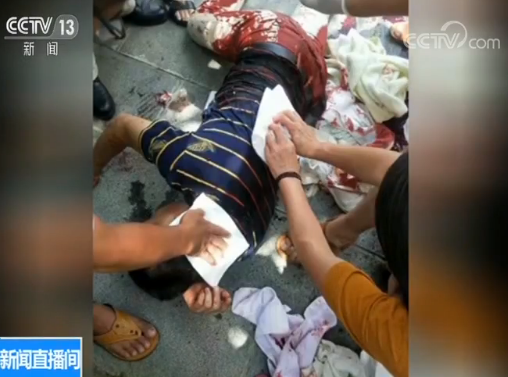 福建漳平市中心医院副院长 李文健:当时浑身都是血!担架上面都是血迹,而且生命症血压已经往下掉、心率非常快,出现了休克表现。背部伤口有23-25公分左右,颈部这个伤口也大,起码有7、8公分,如果再往前面延伸一点点,颈内静脉、动脉一损伤,那可能就来不及。