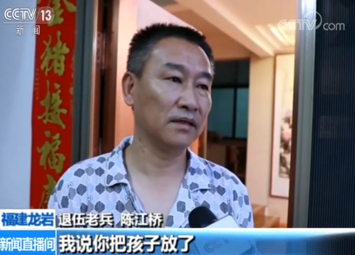 退伍老兵 陈江桥:劫匪把她的女儿勒着脖子,一把刀抵在那个地方。然后我就过去跟他对话一分钟左右,我就叫他有什么事都可以商量,我说你把孩子放了,把刀收起来,放你走,我说如果你有什么要求尽管提出来。