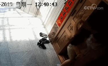 吴女士女儿 小张:我就开了一条缝,就看到一个戴着口罩,戴着帽子,感觉不认识。他要进来,我就把他堵出去,在那几秒钟他就把门很快拉开。
