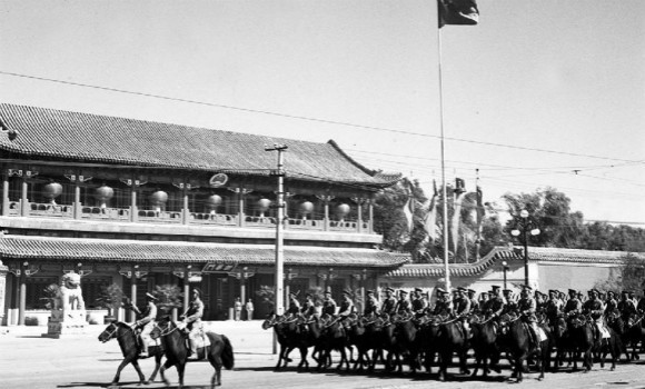 3. 这是1952年国庆阅兵式上,中国人民解放军骑兵部队经过新华门。