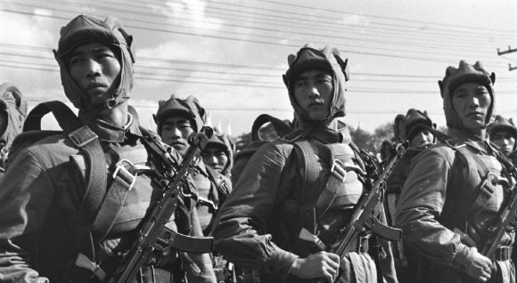 4. 这是1953年国庆阅兵式上的中国人民解放军伞兵部队。