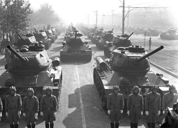 8. 这是1957年国庆阅兵式上等待检阅的中国人民解放军坦克部队。