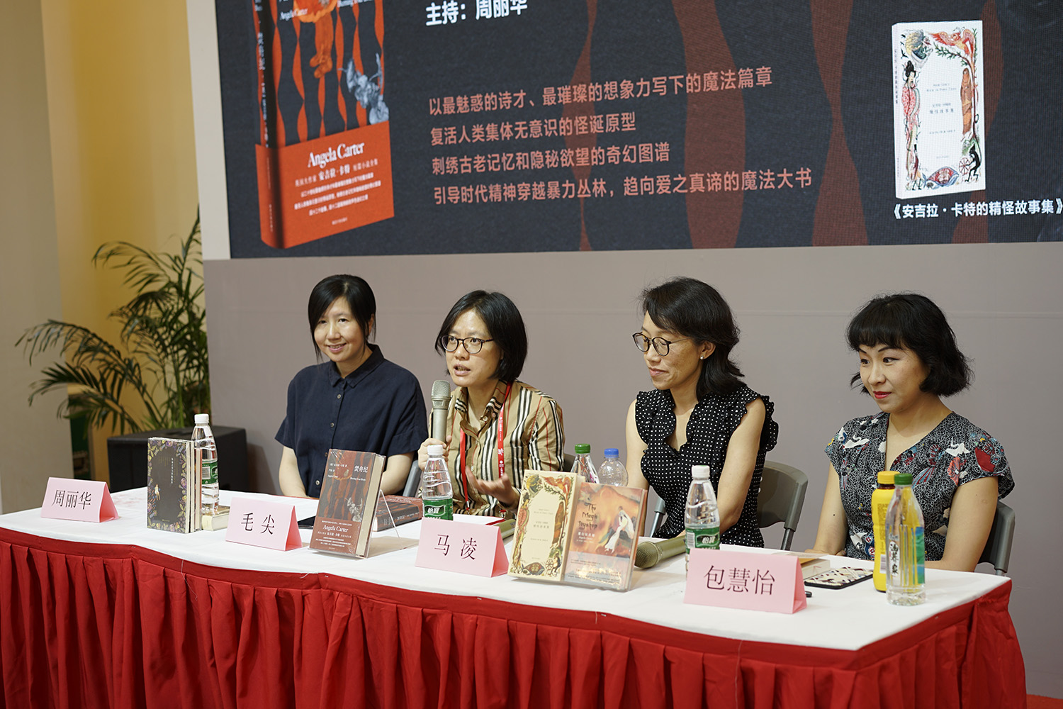 在上海书展期间,卡特短篇小说全集《焚舟纪》的责编周丽华、文学批评家毛尖、复旦大学教授马凌与青年学者、诗人包慧怡一起,作为安吉拉·卡特的粉丝,在一场对谈活动上与读者分享了与卡特有关的个人阅读经验,以及对于卡特书写的意义与影响的认识。