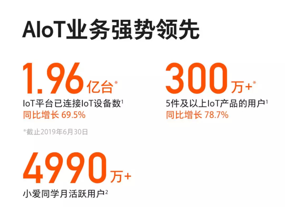 据小米公开数据显示,小米IoT平台已连接IoT设备数1.96亿台。