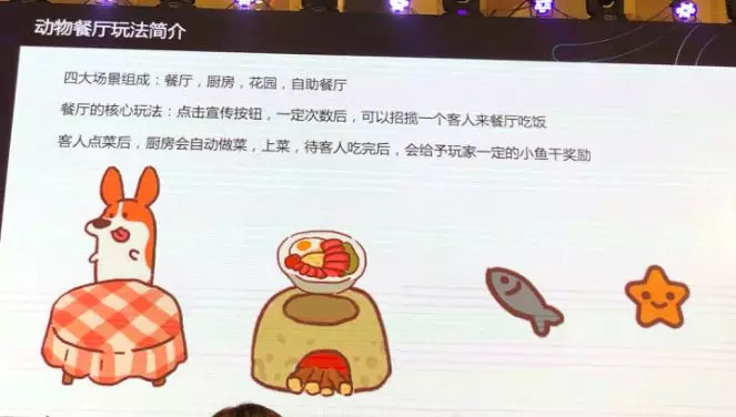 这样一个简单场景,我们觉得它就能够用于立项,而且对于食物,它的覆盖面足够广,覆盖的人群足够多,在它之上可以做的花样也比较多。微信小游戏《动物餐厅》在这样一个前提下应运而生。