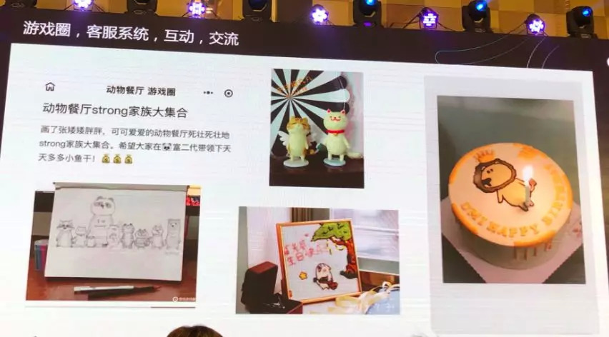 比如左边是玩家给《动物餐厅》里一些他比较喜欢的角色提炼出画的一张全家福。右边是有一个玩家老婆过生日时,他利用游戏里一些元素自己创作的东西,赠送给他老婆当礼物。