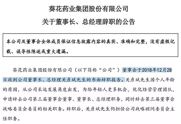 一个月后,葵花药业继续发布公告称,公司董事会选举关玉秀为公司第三届董事会董事长,选举关一为公司第三届董事会战略委员会委员、并担任董事会战略委员会召集人。
