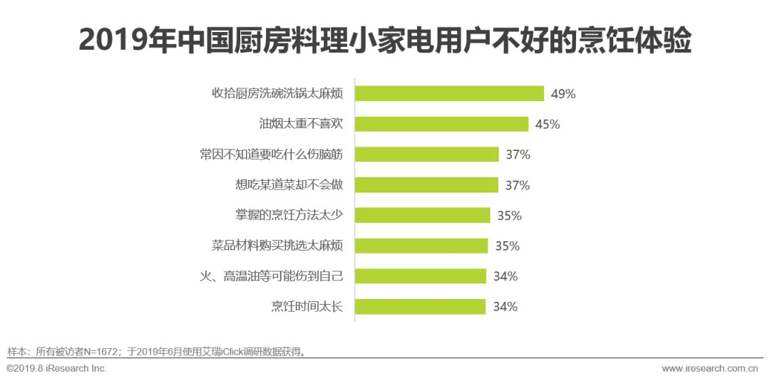74%的用户热衷烹饪,清洗麻烦和油烟重的体验最不佳