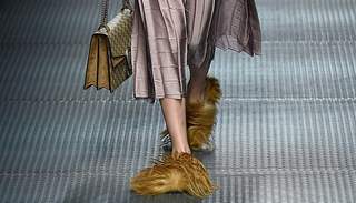 在人们忙着调侃这到底是约克夏还是诺福克梗犬时,它已经火了。不仅日本版《Vogue》的时装总监Anna Dello Russo穿着它上了街,英国《卫报》也评它为“下一季最想要的鞋子”。事实上,当动物长毛、绒毛或者聚甲醛等合成材料出现在秀场时,我们其实更适应它们担当成衣或配饰的角色,比如人见人爱的Fendi: