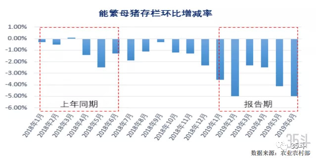 非洲猪瘟爆发至今已一年有余,全国生猪出栏和存栏量下降较明显。根据国家统计局数据,2019年1-6月,全国生猪出栏31346万头,同比下降6.2%,生猪存栏34761万头,同比下降15.0%。