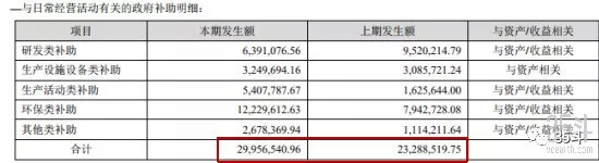 2018年温氏股份共获政府各类补助约1.49亿元;今年上半年共获补贴近3000余万元,比去年同期增加600余万元。
