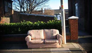 沙发,作为家中室内陈设的日常物件,当它变得陈旧或破败时,你会经常在街头发现它的身影,它可能是被主人遗弃,或是主人觉得已不适合作为家中“好看”的陈设物,而被转移到一个公共场域中,坐在上面的“主人”身份变得多样起来,而它的生命似乎也变得更为丰富。