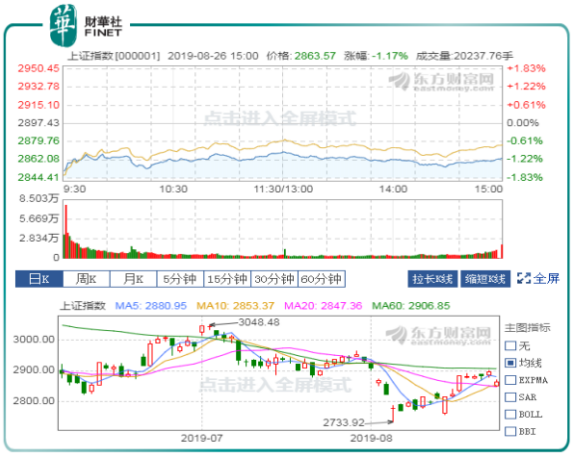 8月26日,受周末多重消息影响,沪深两市集体低开均低开逾1%,但开盘之后指数震荡高走,黄金板块开盘集体爆发,黄金、农业、稀土板块先后拉升,随后汽车零部件、医药股盘中崛起,三大指数跌幅悉数收窄,创指再度上探至1600点上方。午后,三大股指低位震荡,跌幅再度扩大至1%以上。尾盘,指数表现波澜不惊,总体大盘延续弱势震荡格局,两市维持低位运行态势,权重与题材均表现低迷,沪指最终收盘下跌逾1%,两市合计成交金额逾4500亿元。
