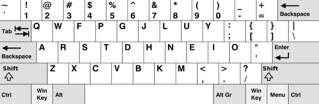 同样,觉得 QWERTY 键盘是效率杀手的还有 Colemak,他于 2006 年推出了Colemak 键盘 ↓↓↓