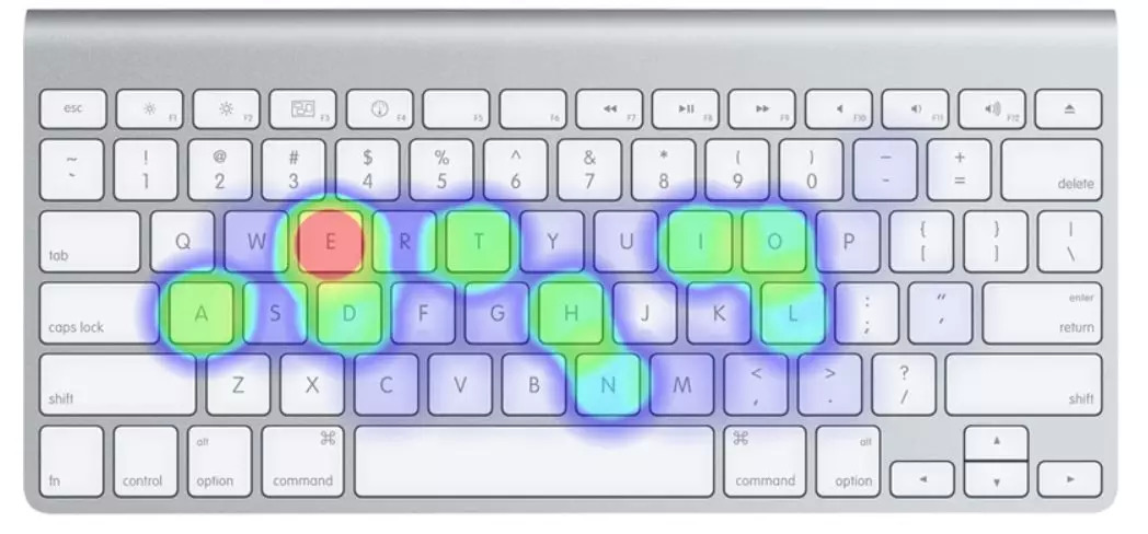 为了让大家能直观感受,世超将下面这段话分别输入三款键盘,并生成键位热力图。