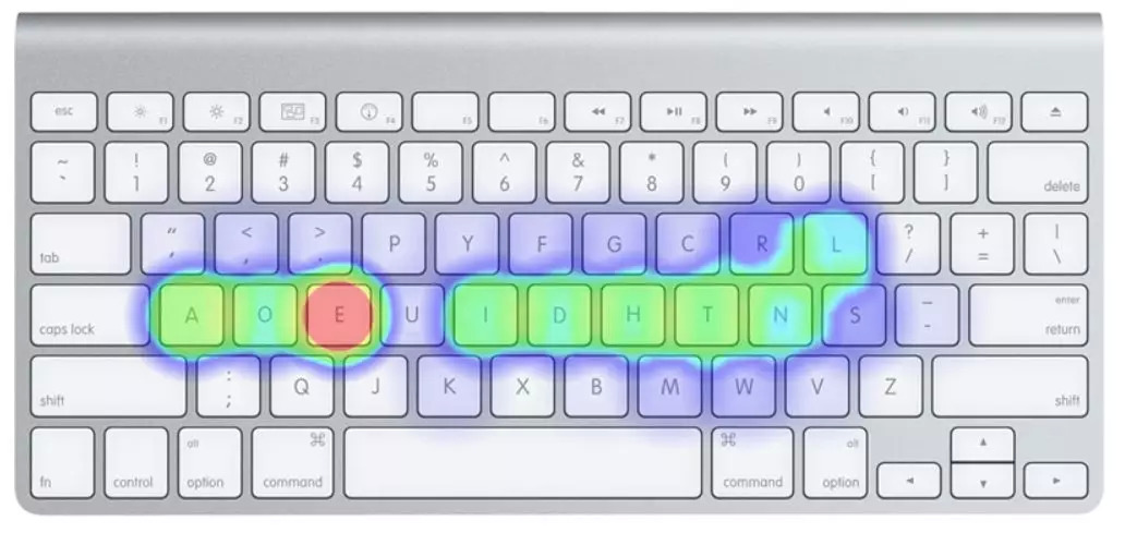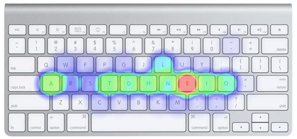 它以一个更激进的方式,将高频键位安排在了字母区第二行,在左右区均匀分布。