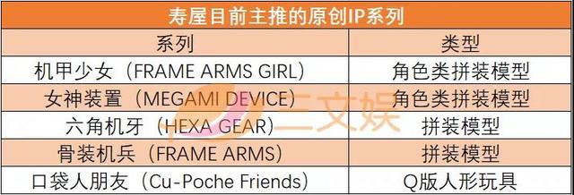 过去一年里,寿屋的机甲少女系列、骨装机兵系列以及相关的模型配件卖得不错,而女神装置系列和六角机牙系列的销量也比较稳定。寿屋自己IP给营业额做出了巨大的贡献。