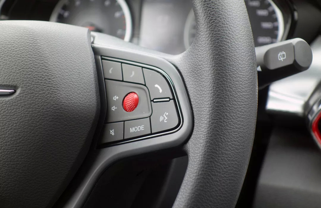 ▲方向盘控制区中间会有个红色调节按钮,看起来是旋钮其实要一点点按,很有趣