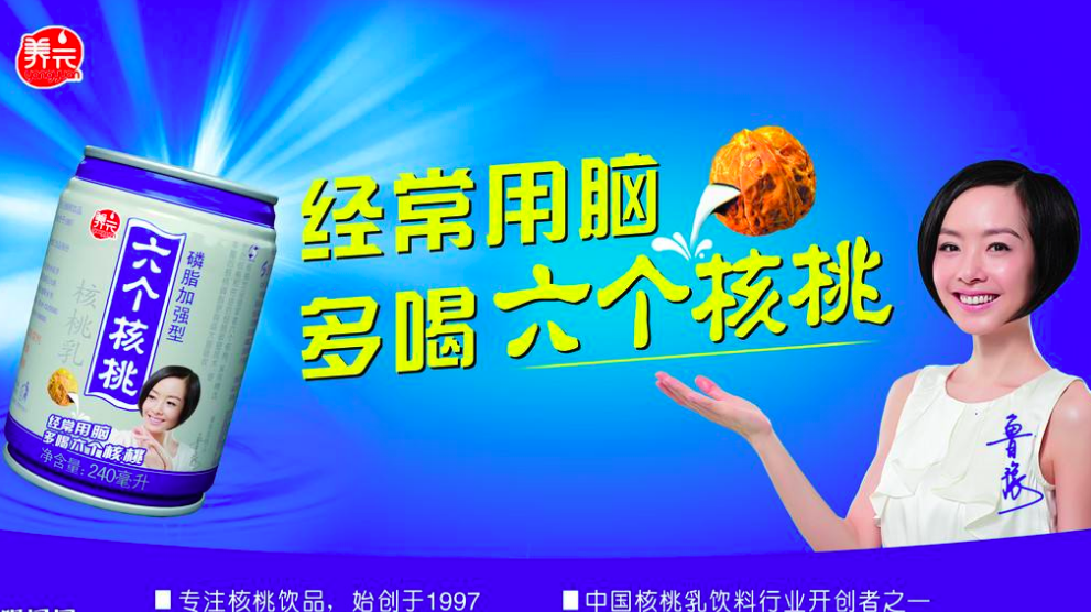事实上,“重营销,轻研发”一直是养元饮品的发展策略。2010年,著名主持人陈鲁豫演绎了一条“经常用脑,多喝六个核桃”的广告,虽耗资6000万,却成功吸引了学生、家长及白领等群体的注意。这一年,“六个核桃”的销售额达到15亿元。此后短短三年,养元公司的业绩突破了100亿元。