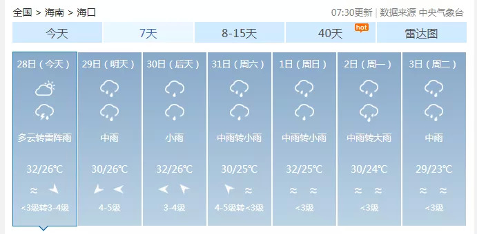 28日~30日,海口市近海和琼州海峡、南海东中部海域、西沙、中沙群岛附近海面、北部湾海面和本岛四周海面风力自东向西逐渐增大到9~10级、阵风11级。南沙群岛附近海面风力6~7级、阵风8级。