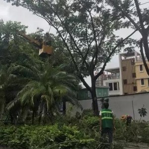 为减少台风对海口市园林绿化造成损失,海口市园林和环境卫生管理局绿化管理所从8月27日起加强台风防御工作,截止29日中午12点,海口市园林和环境卫生管理局绿化管理所出动3584人次,车辆设备308辆次,油锯高枝锯1148台次,加班加点对滨海大道,国兴大道、美俗路、南海大道、碧海大道等53条道路的树木进行护桩加固2915株,修剪乔木2058株,清理棕榈科枯枝2517株,清理倒伏树木16株,清理断枝28株,扶正加固树木35株,清理绿化垃圾243车。全面做好台风防御工作,减少台风对园林绿化造成的损失。