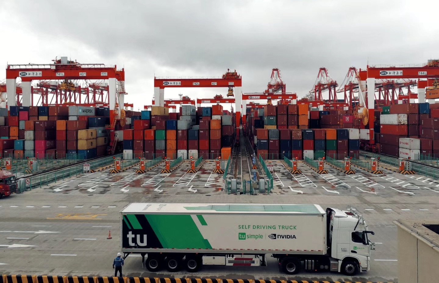 未来,智能重卡一路从临港的集装箱堆场出发,经过东海大桥,到达洋山港的码头,短时间内完成货物装卸。