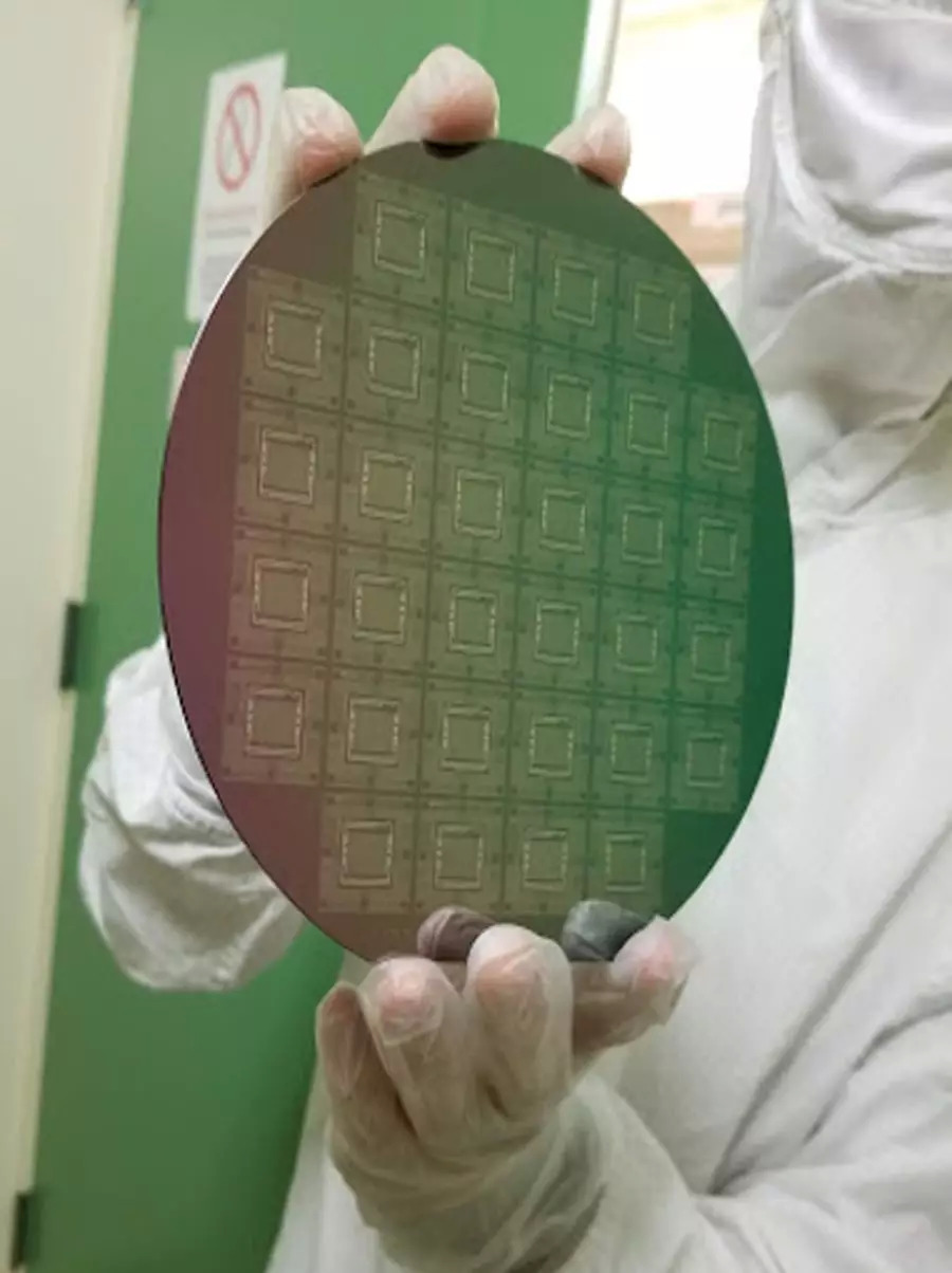 图注:贴合了碳纳米管的晶片,每个晶片有 32 块芯片。
