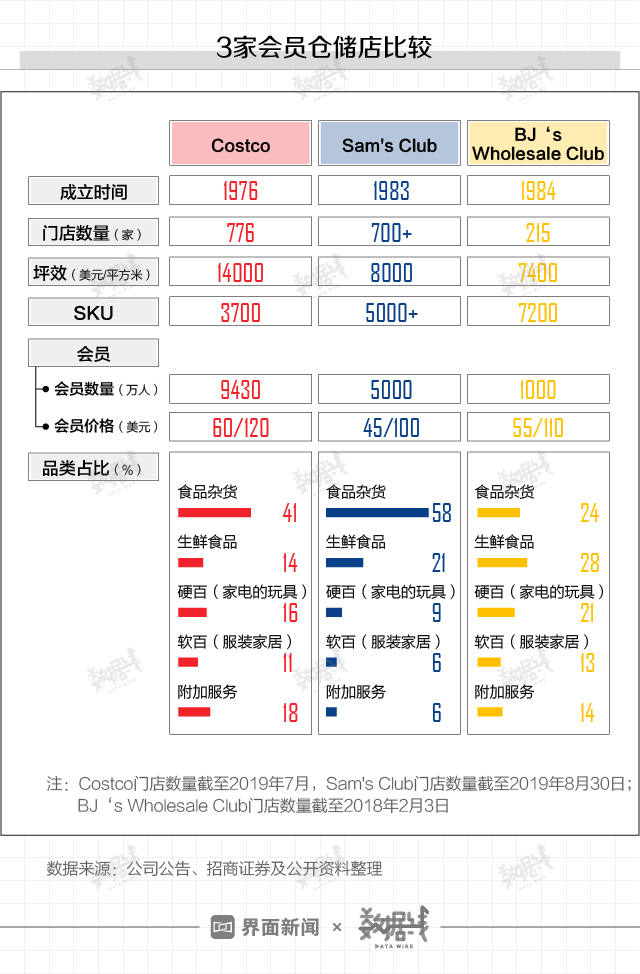 然而,与同为会员仓储店的Sam's Club和BJ's Wholesale Club相比,Costco的会员价格高于Sam's Club和BJ's Wholesale Club。