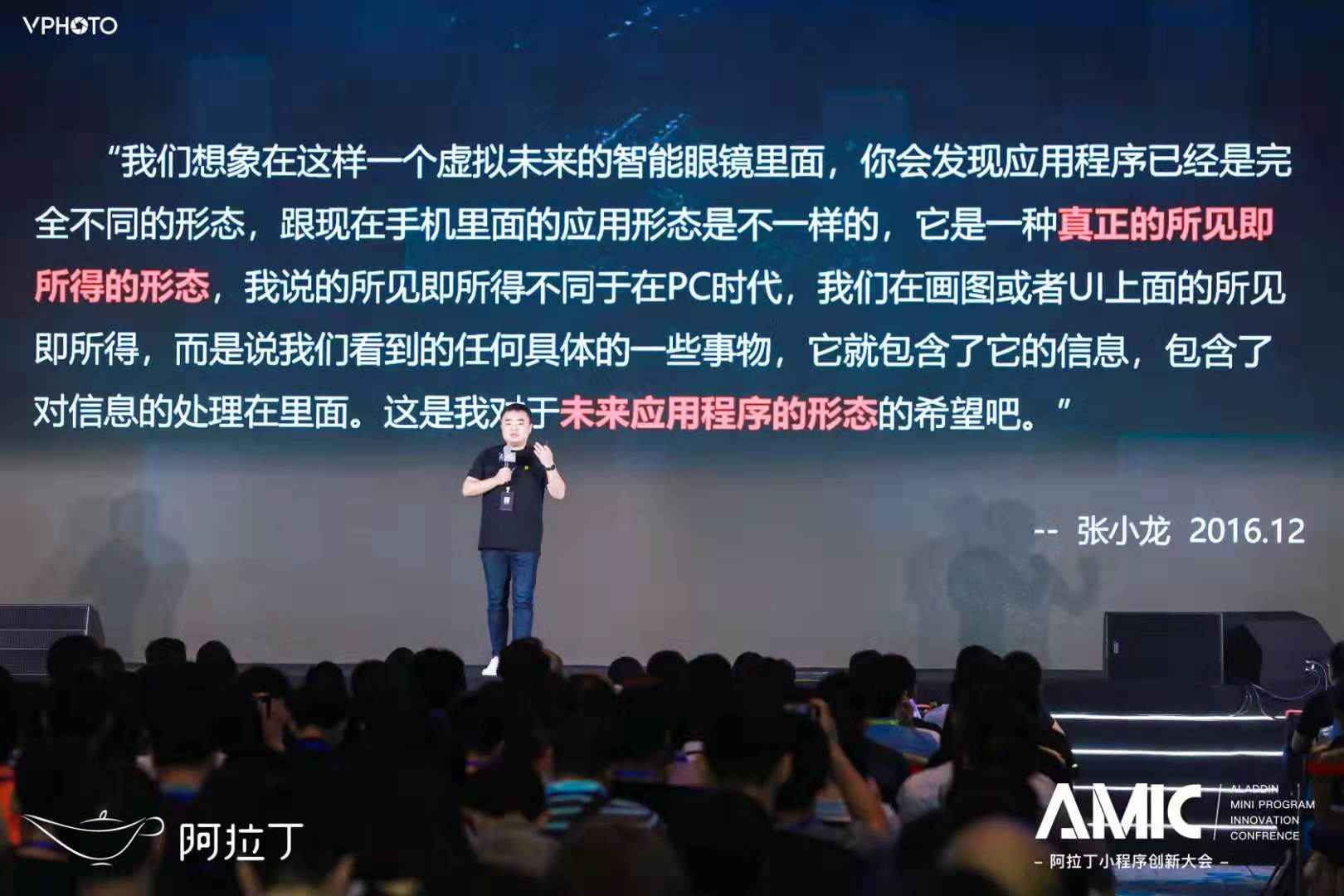 在理解一件事情的时候要理解它可能的终极在哪里,比如小程序的终极形态是什么。在2016年张小龙第一次讲小程序的时候就提到,就是这段话,(这是)他想要的未来应用程序的形态。其实小程序并不是为手机准备,他里面提到智能眼镜,我的理解是AR。