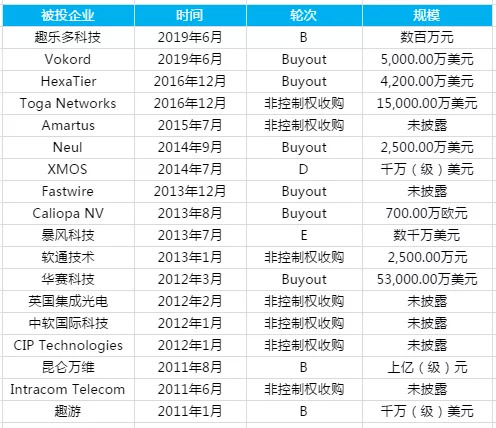 以上是投中网依据公开信息整理的2011年以来华为对外投资清单,投资领域以芯片、软件、互联网等行业为主,总数量约20家。但这些并非华为对外投资的全貌,因为这家非公众公司大部分的对外投资并没有公开。