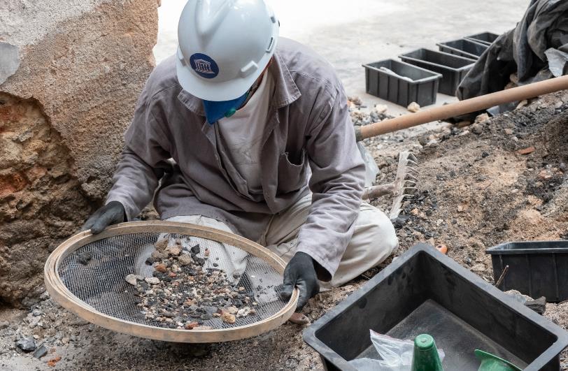 这一年来的大多数日子里,数十名训练有素的研究人员会拿着刷子和铲子,在博物馆的废墟中搜寻文物。学生们会驻扎室外,通过筛网筛出污垢,清理灰尘并拍照。
