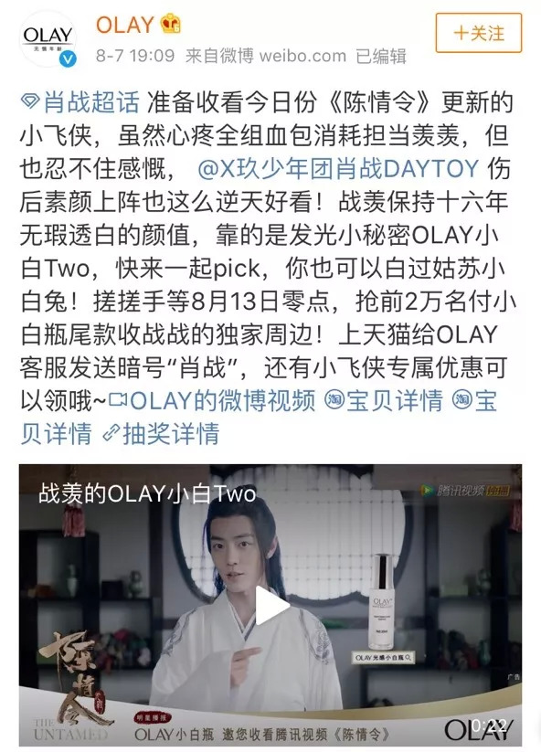 “魏无羡”最爱的 olay小白瓶,“蓝忘机”力推的祖玛珑蓝风铃……当红爱豆带着他们的美妆产品,席卷今夏。
