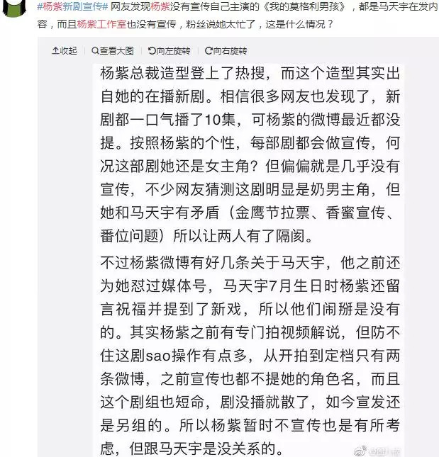 可这场风波还没完,杨紫工作室那边还没来得及辟谣,马天宇这边倒是率先发了一条微博,疑似表达宣传工作很累。