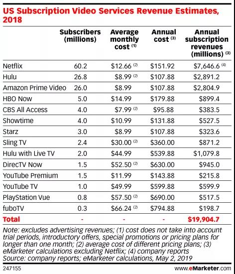 不仅是电影业,大部分有线电视运营商也面临空前的困境。国际市场研究机构eMarketer认为,付费电视成为了近年来流媒体业务增长的牺牲品。eMarketer数据显示,2018年有1.867亿美国成年人收看付费电视,而当年退订有线电视用户的规模则达到了3300万人,远高于上年2710万人的增长。