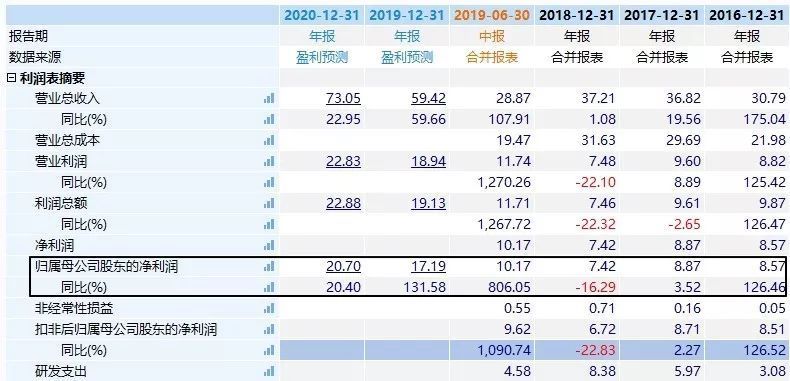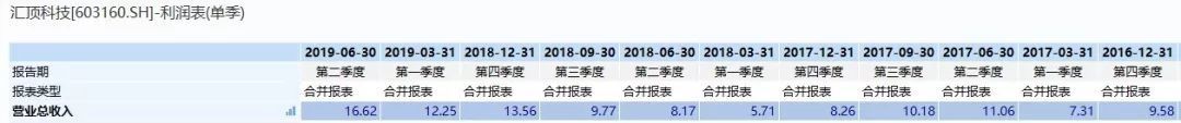 今天聊聊汇顶科技。下图是汇顶科技的主要利润表数据,可以看到在2017年和2018年,公司利润已经不增长甚至下滑了,但是2019年上半年,实现净利润10.17亿元,同比增长806%。
