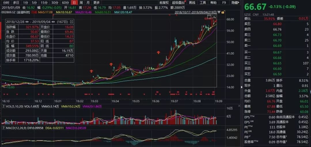 二是政策超预期。很显然,金溢科技的大涨是政策带来的,而这个政策是不断超预期的,而且在朋友圈刷屏了,如果不能超预期的政策,基本上可能炒作一次就熄灭了。所以垃圾分类也好、深圳示范区也好,关键还是后续是否有政策跟进。
